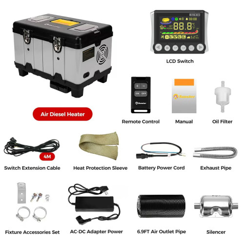 onze dieselkachel heeft een vermogen van 8 kW en een thermisch rendement van ≥ 90%. Hij verbruikt slechts 1 gallon diesel per nacht om een grote ruimte van 20 m² continu te verwarmen. Hij beschikt over een ingebouwde intelligente thermostaat en een verbeterde, ultrastille oliepomp met een geluidsniveau van ≤ 35 dB, wat zorgt voor een comfortabele nachtrust in campers en tijdens kamperen in de buitenlucht, zonder last te hebben van de kou.
