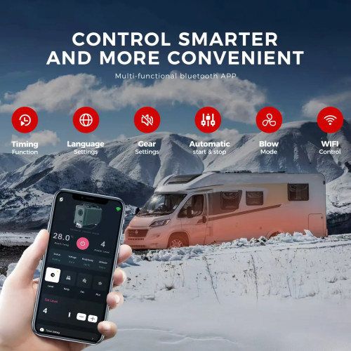 Ervaar ultiem comfort en gemak met onze nieuwste dieselluchtverwarmer, nu met een lcd-schakelaar met wifi . Koppel uw verwarming naadloos aan de app en geniet van afstandsbediening, waar u ook bent . Zo kunt u uw ruimte zelfs op duizenden kilometers afstand voorverwarmen . Of het nu uw huis, garage of voertuig is, kom elke keer aan in een warme en gastvrije omgeving.